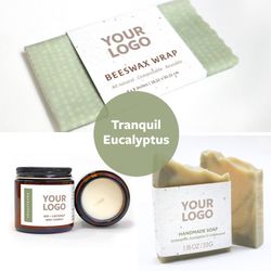 A curated set that combines sustainability and luxury in a compact and budget-friendly size. It includes three eco-conscious home items featuring your logo, perfect for showing appreciation to clients or employees in a sustainable and thoughtful way. Here's what's included: 1 beeswax wrap, 1 soy and coconut wax candle (4 oz), 1 handmade soap bar, handmade paper box filler, and a full-color custom sticker. You can also add a custom insert printed on handmade paper made from recycled materials. | B Corp Certified | Women-Owned