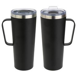 Geco 28 oz Stainless Steel Tumbler is made of 18/8 stainless steel construction with a powder-coated matte finish and copper-lined and double-wall insulated to keep beverages hot for up to 4 hours and cold for up to 12 hours!. Comes with a clear plastic push-on lid with black sliding drink opening. Compatible with most car and truck cup holders. Hand wash only. Must be ordered in exact case quantities - Black color = 25pcs/CTN. Orders may ship from CA location. BPA Free and FDA certified.
