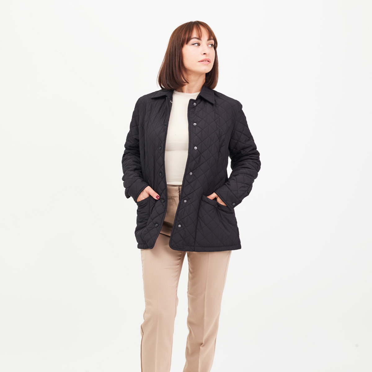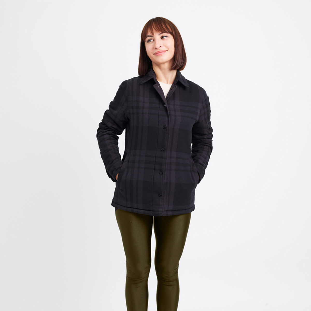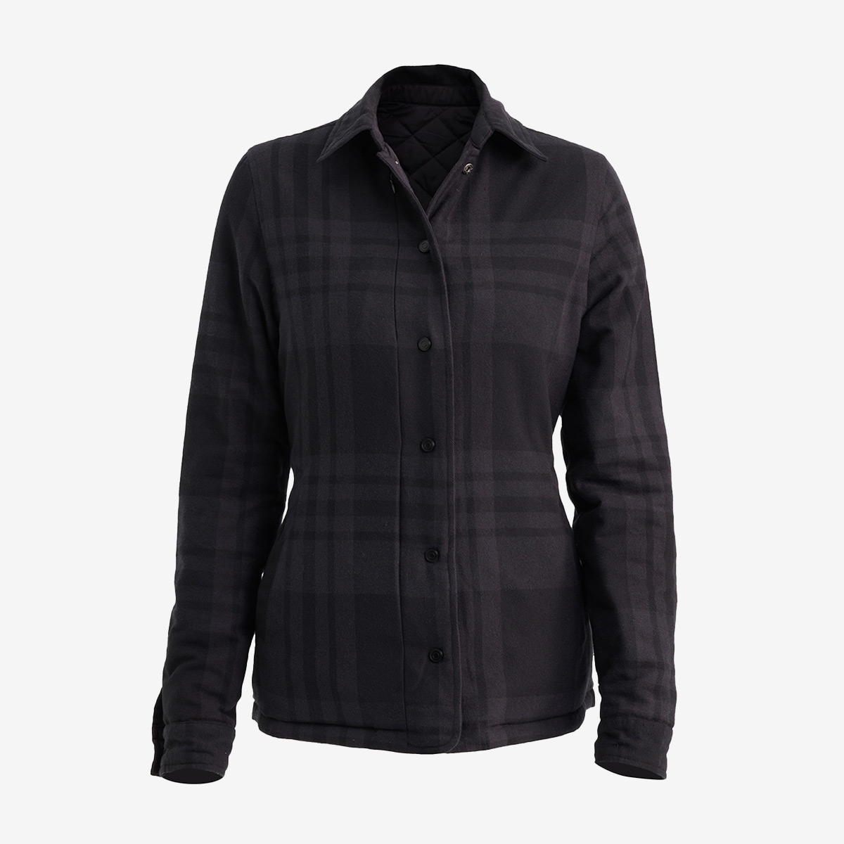 A premium, insulated, reversible jacket that is brimming with style and packed with features. With a diamond quilted polyester exterior and a reversible cotton poly flannel interior, the Diverge is the ultimate 2-in-1 jacket, flip from urban sophistication to rugged countryside in seconds. Made with recycled materials Water resistant exterior free of forever chemicals Subtle, tasteful plaid pattern on reversible interior Interior chest embroidery pocket. Shirt collar, Snap buttons