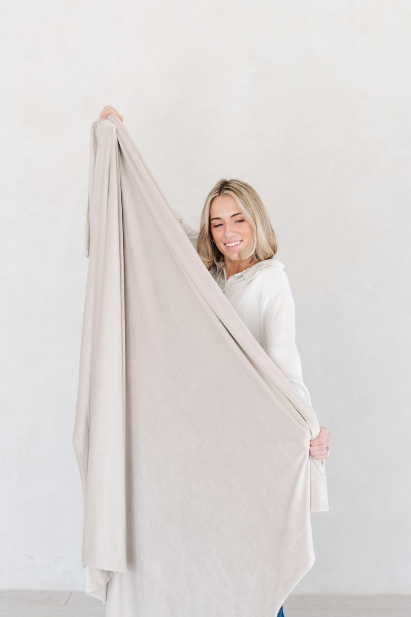 For those who appreciate the comfort of a high-quality stretchy blanket, this ultra-stretchy, adult swaddle-style blanket takes it to the next levelInfused with Saranoni's signature softness, it offers the ultimate in coziness and versatility. Available in the throw and XL sizes, Minky Stretch will win hearts wherever it goes! Our short, velvety minky stretch allows for seamless logo embroidery, offering a great option for personalized branding or gifts.