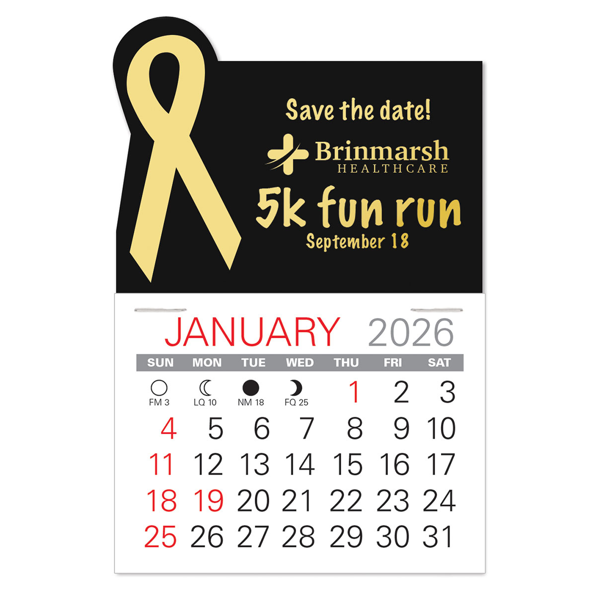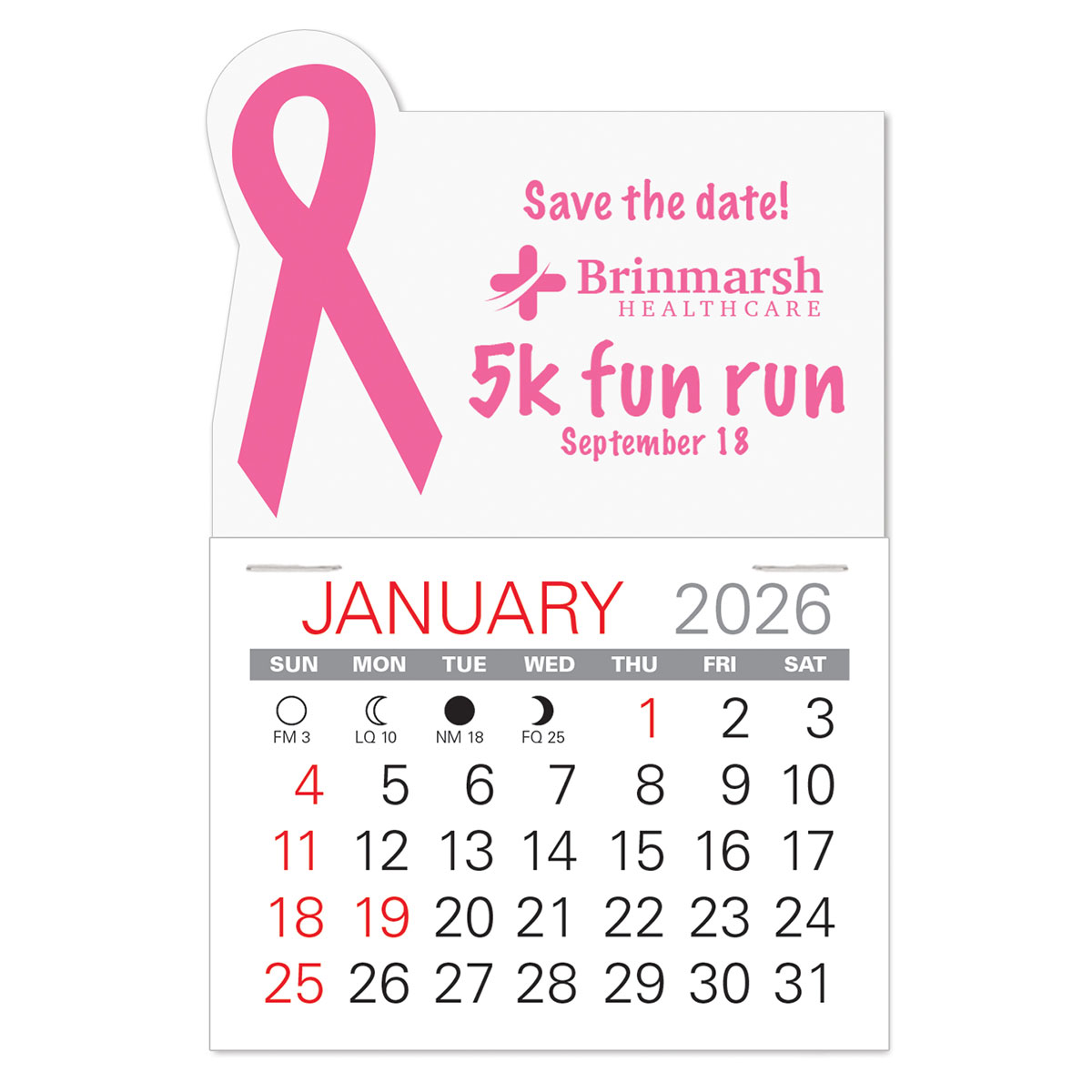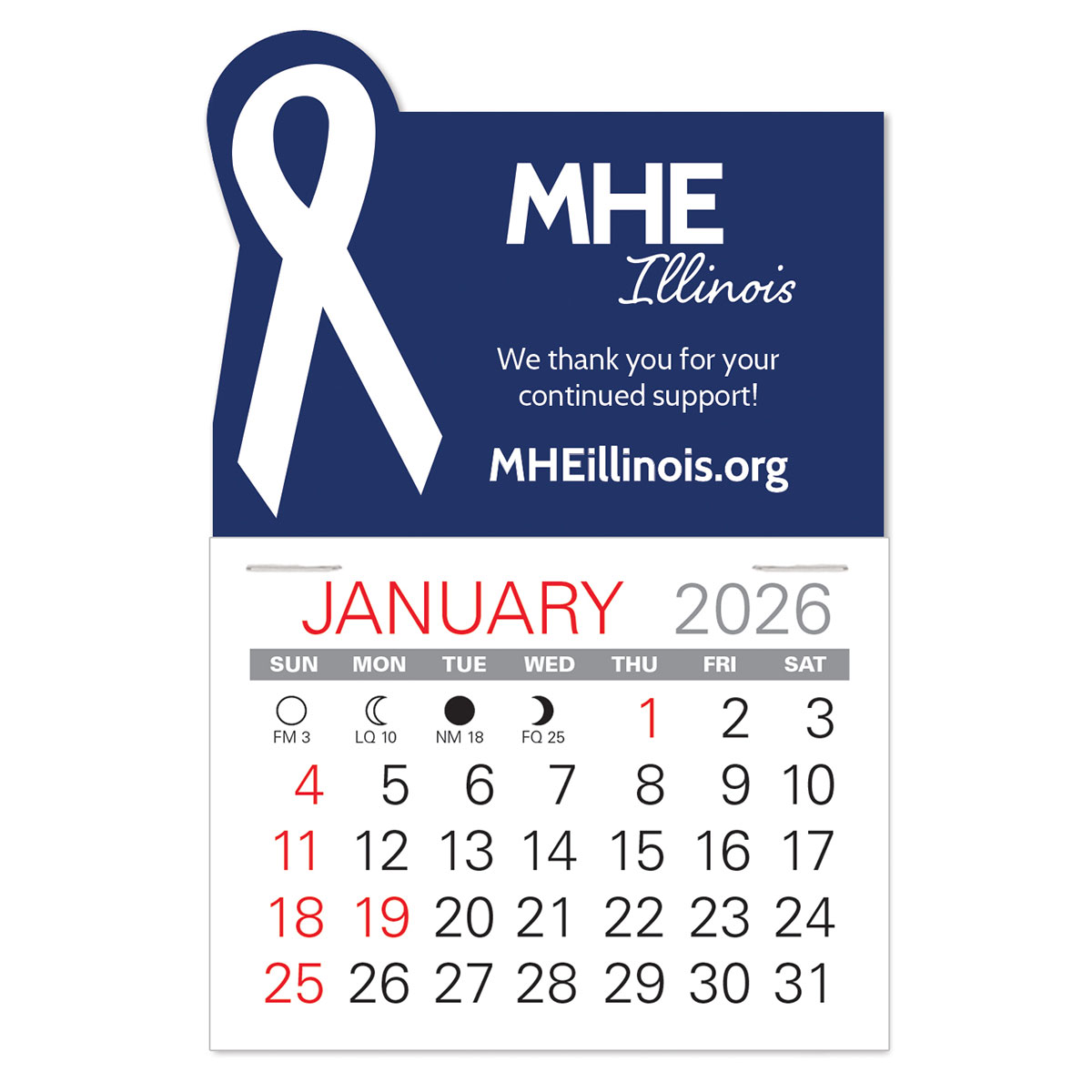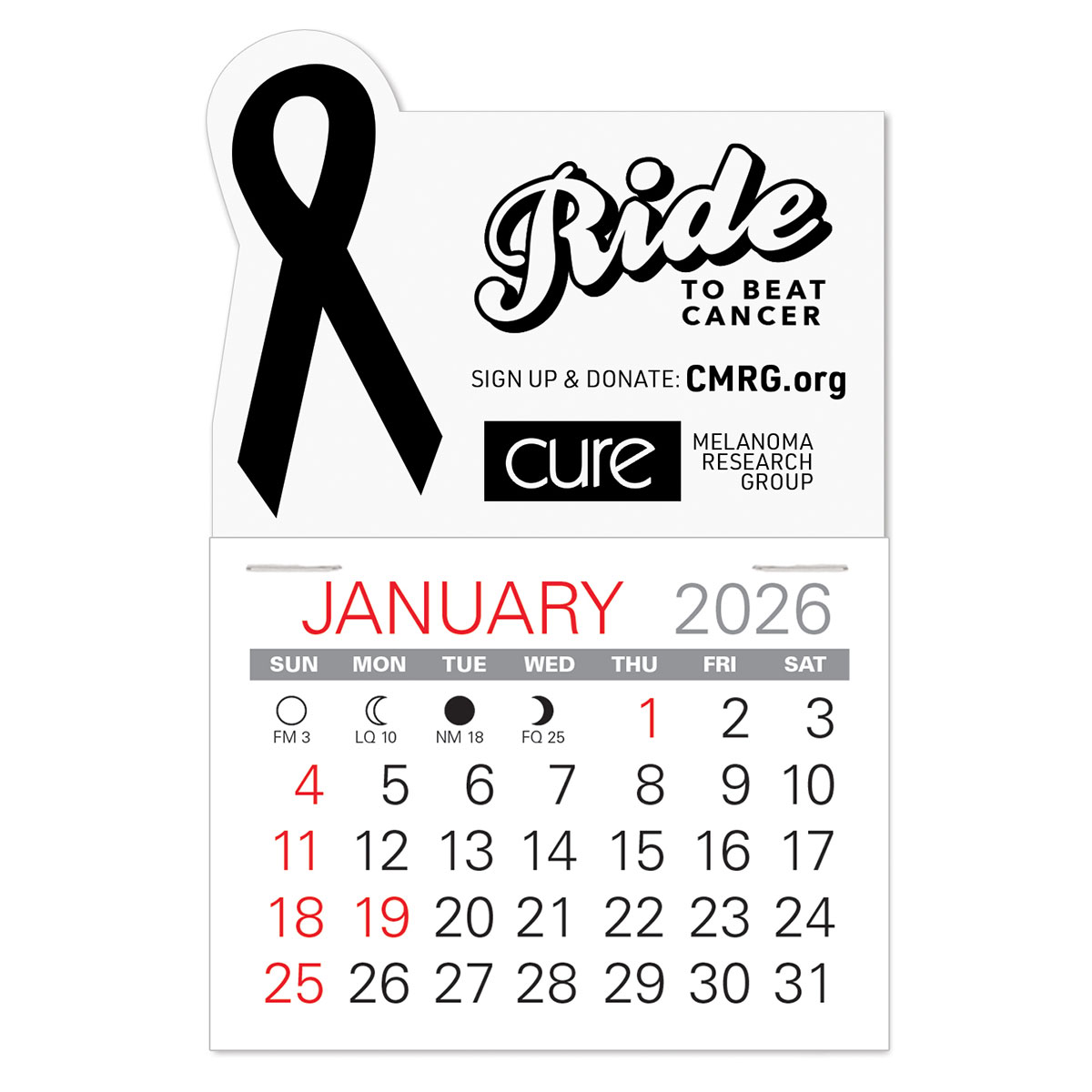 Low cost, self-adhering Awareness Ribbon stick-on calendars can go anywhere and are the ideal way to keep your name in front of customers and prospects all year long. Available in 6 vinyl colors for most any cause, non-profit, or organization.