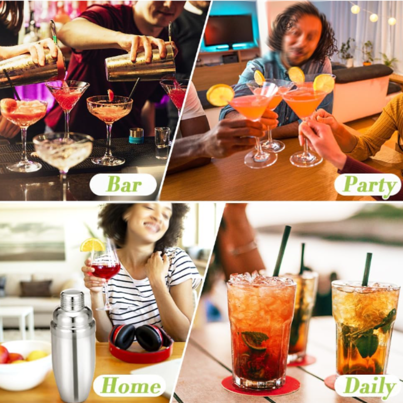 Crafted from premium 18/8 stainless steel with a brilliant mirror finish, this cocktail shaker set delivers superior quality that resists rust and leaks for years of reliable use. The durable 304 stainless steel construction is both dishwasher-safe and versatile enough for home or professional settings, making it perfect for entertaining guests or commercial bar use. Its compact design stores effortlessly in drawers or cabinets, while the professional-grade materials ensure you can mix everything from classic cocktails to creative new drinks with confidence. Whether you're hosting memorable parties at home or running a busy bar, this set combines lasting durability with elegant functionality to elevate your mixology experience.
