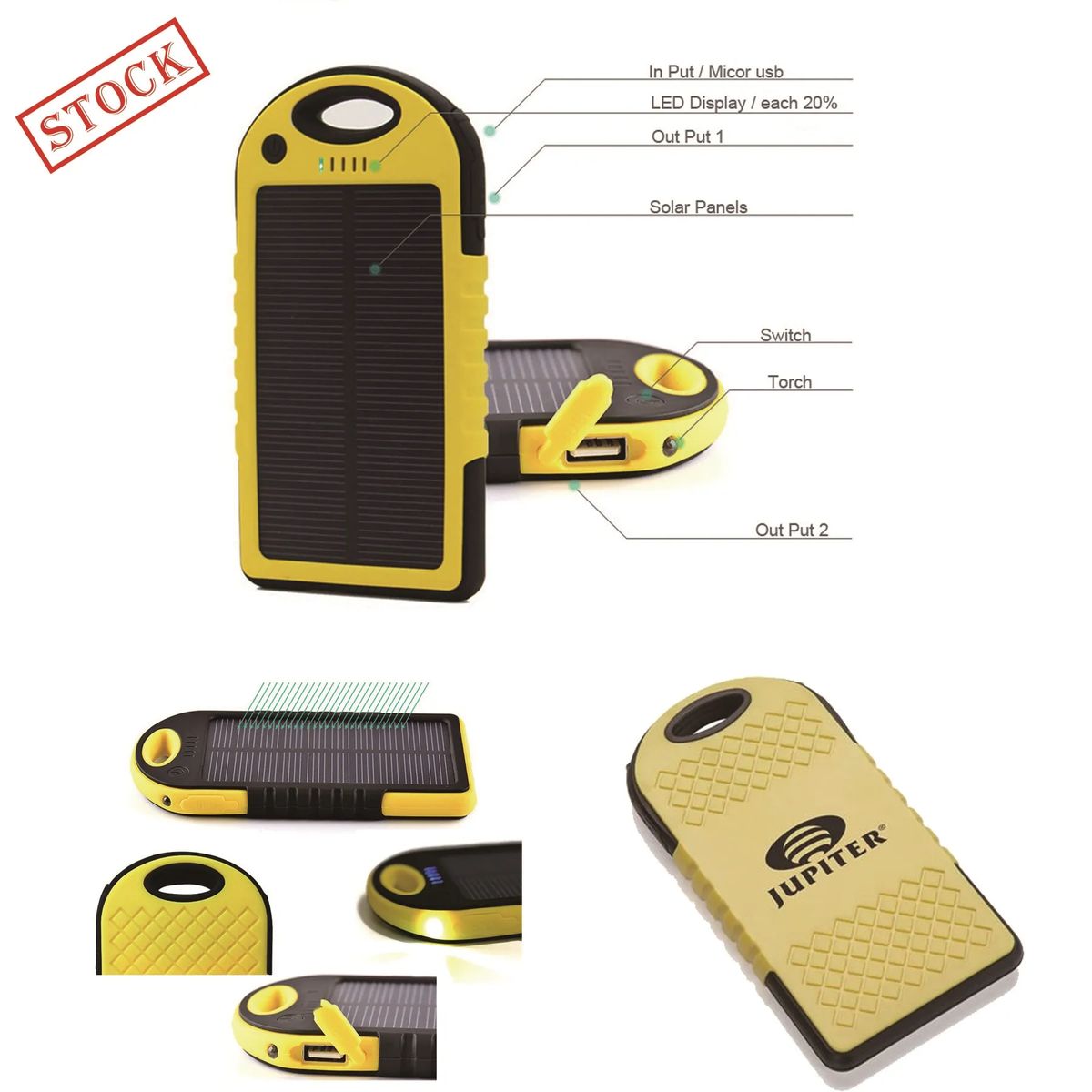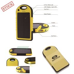 A Power Bank Cell Phone Custom Charger can charge your smartphone, MP3 player and more. The reusable power bank is able to charge from the USB cable which can recharge the back-up battery or other devices.Battery capacity: 5000 mAh. featured with dual USB output ports and 1 bright LED flashlight. Made of durable and reliable ABS+PC+Silicone material, protects it from rain, dirt and shock/drops. Input 5V/1A, output 5V/1A, and 5V/2.1A.It is equipped with a compact solar panel, 1.5W which can recharge the battery itself under sunlight. Also, you can use the USB cable to fully charge it. Stock in US warehouse,and decorated in USA,5-7 business days fast shipping!